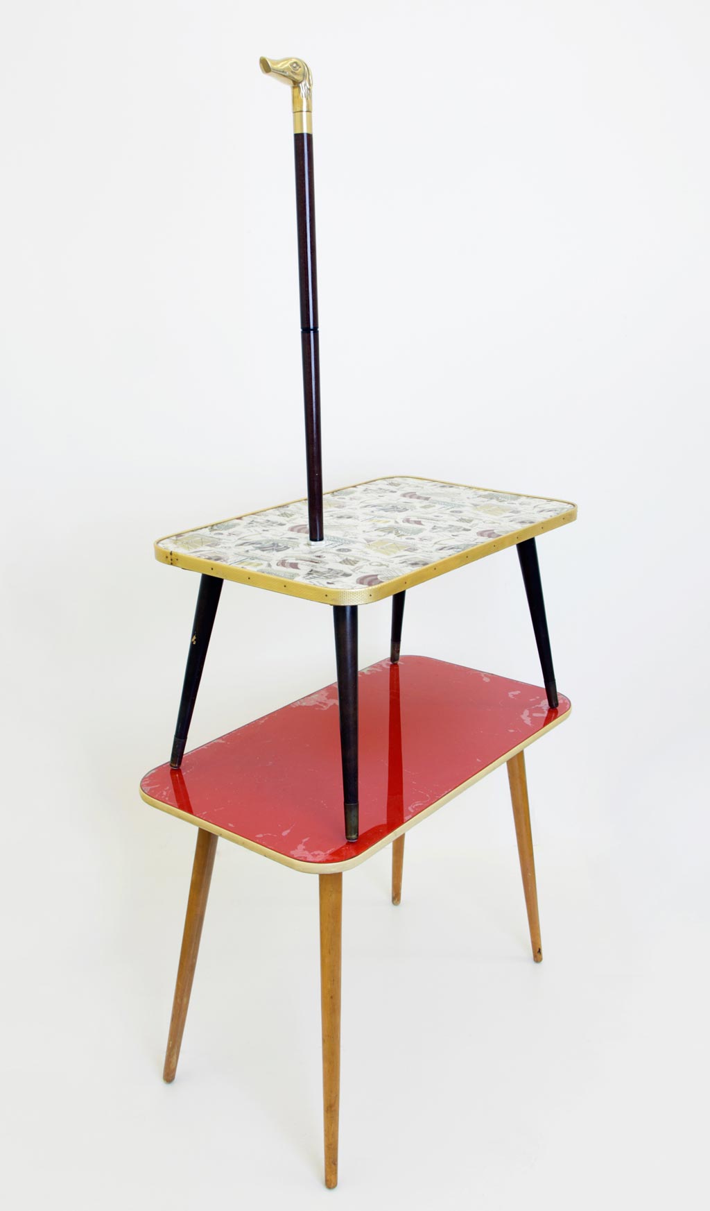 2x 50er Jahretische, Spazierstock mit Messing, Hunde-Kopf als Knauf