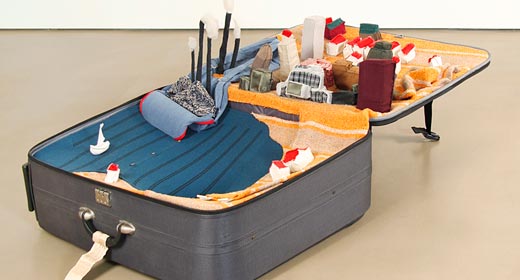 Koffer, gebrauchte Kleidungsstücke, Klanginstallation